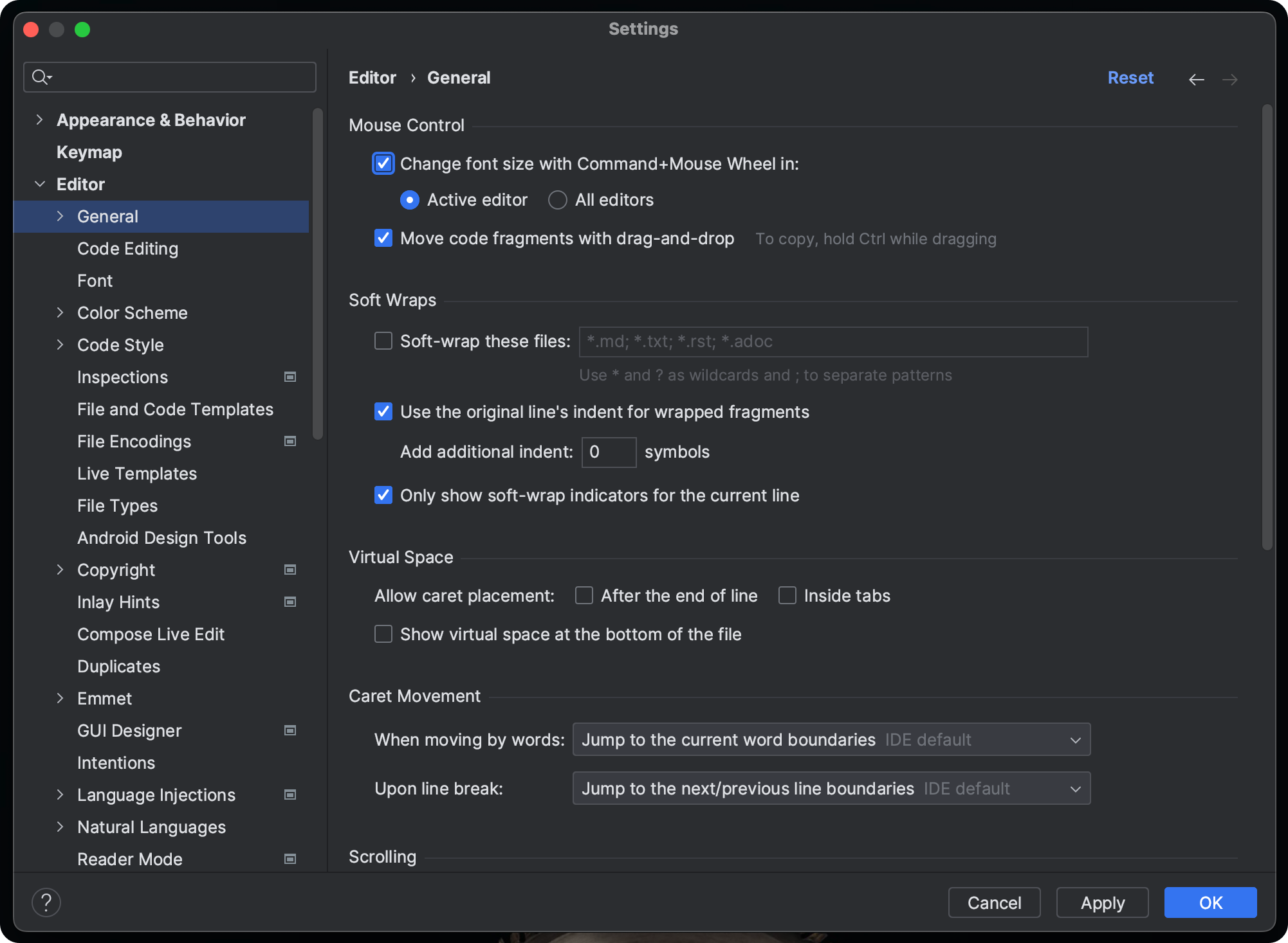 - 'Change font size with Command + Mouse Wheel in:' 체크
