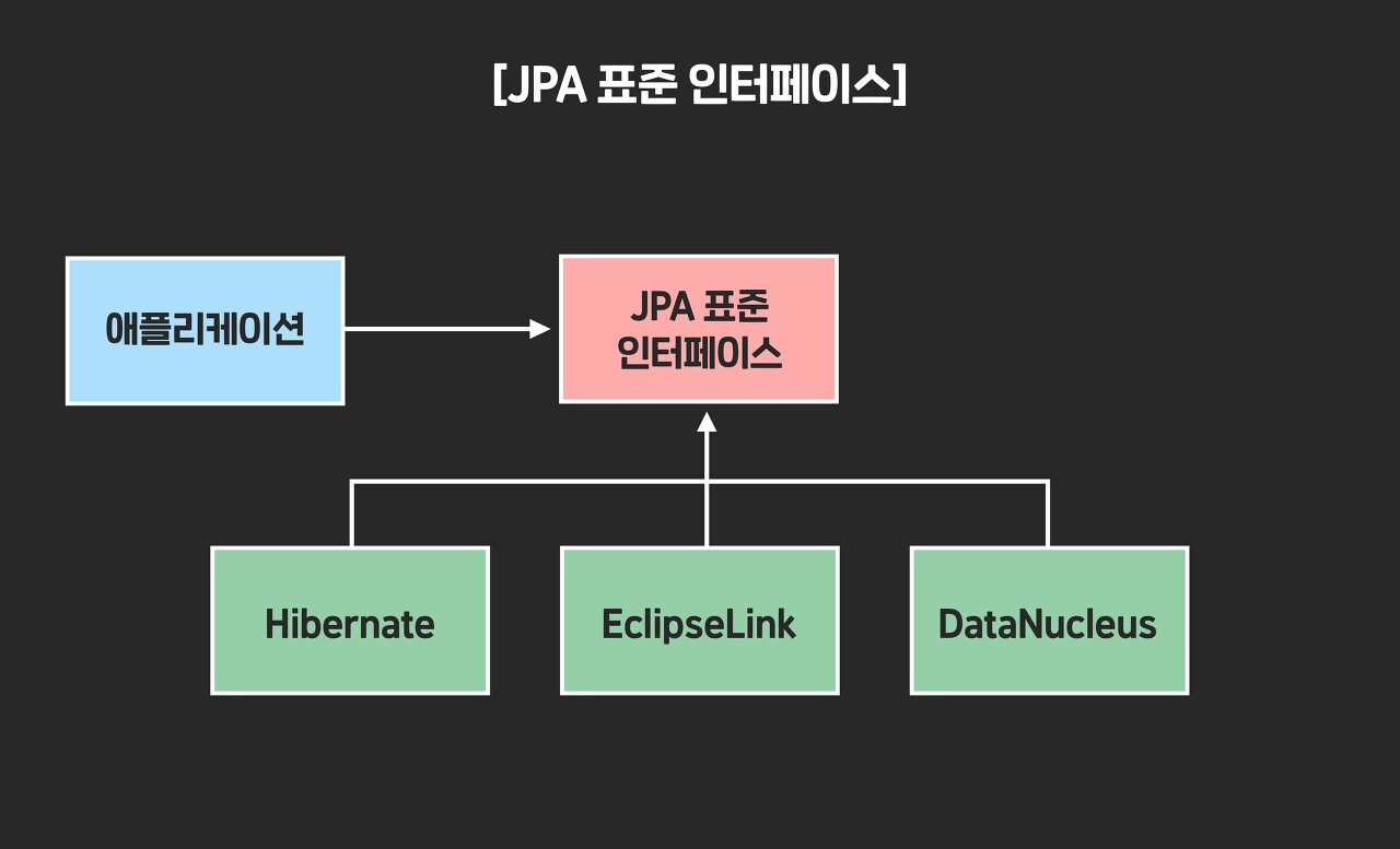따라서 JPA를 사용하기 위해서는 JPA를 구현한 Hibernate, EclipseLink, DataNucleus와 같은 ORM 프레임워크를 사용해야 한다.
