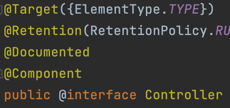 우리가 자주 사용하는 어노테이션인 @Conteroller, @Service, @Repository 등도 내부적으로는 @Component를 가지고 있다.