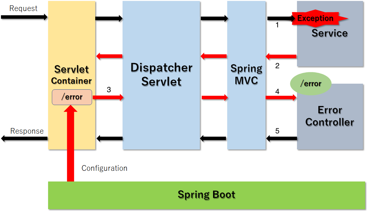 - 핸들링되지 않은 예외는 최종적으로 /error로 위임되어 BasicErrorController가 처리합니다.
