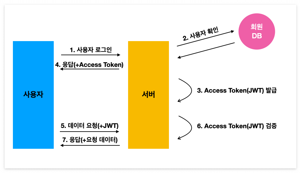 위에서 알아본 쿠키와 세션을 사용한 인증 방식과는 어떻게 다른지 그림을 통해서 알아보자.