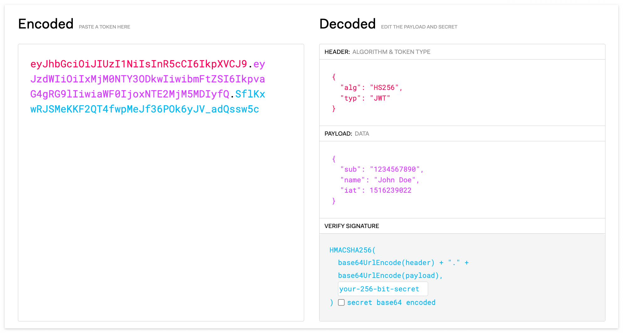 - Payload에 대한 정보가 암호화되는 것이 아니라 단순히 인코딩만 하고 있기 때문에 탈취 당한다면 디코딩을 통해 데이터를 확인할 수 있다.