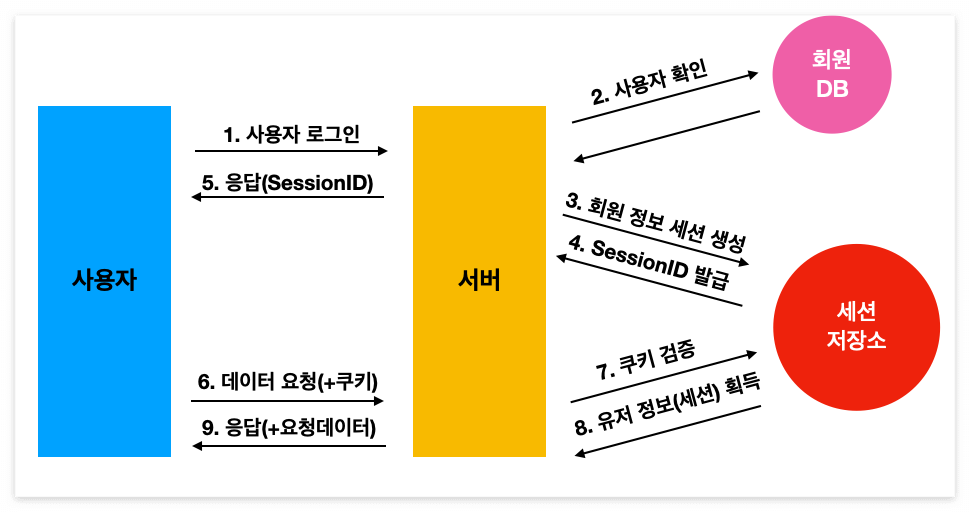 - 클라이언트는 요청마다 응답받았던 세션 ID를 쿠키에 담아 함께 전달한다.